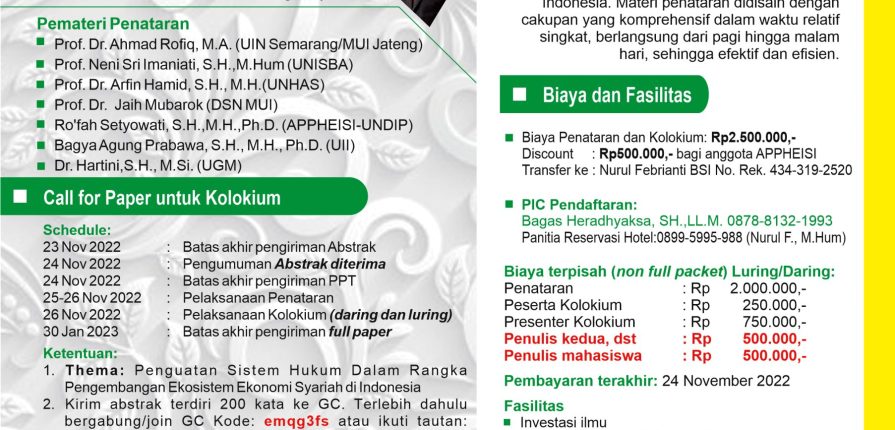 Kerjasama Asosiasi Pengajar dan Peneliti Hukum Ekonomi Islam Indonesia (APPHEISI) dengan Fakultas Hukum Universitas Diponegoro dan Fakultas Hukum Universitas Islam …