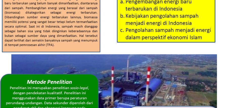 Pengembangan Energi Baru Terbarukan Melalui Kebijakan Pengolahan Sampah Menjadi Energi Dalam Perspektif Ekonomi Islam karya Gatoet Poernomo dan Indah Cahyani (FH …