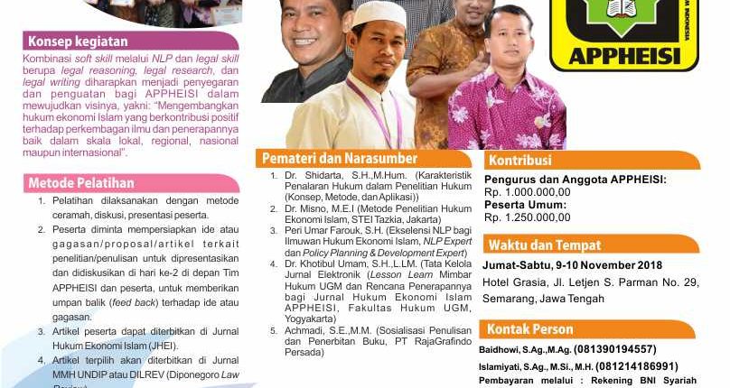 Departemen Penelitian dan Publikasi Ilmiah, Asosiasi Pengajar dan Peneliti Hukum Ekonomi Islam Indonesia (APPHEISI) rencananya pada Jumat-Sabtu, 9-10 November 2018 …